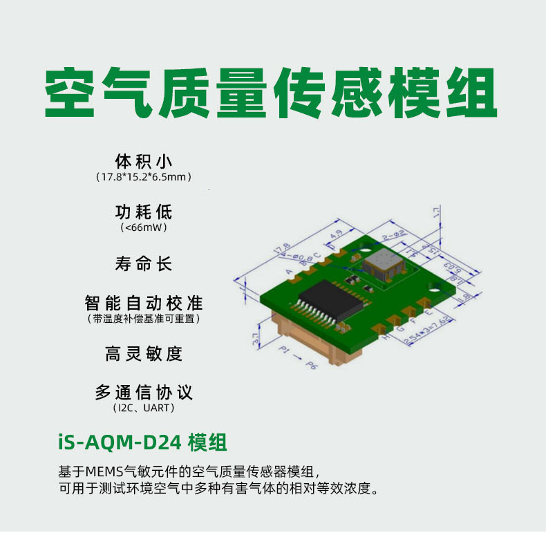 感测范围:400 ~ 5000 ppm CO2 相对等效值